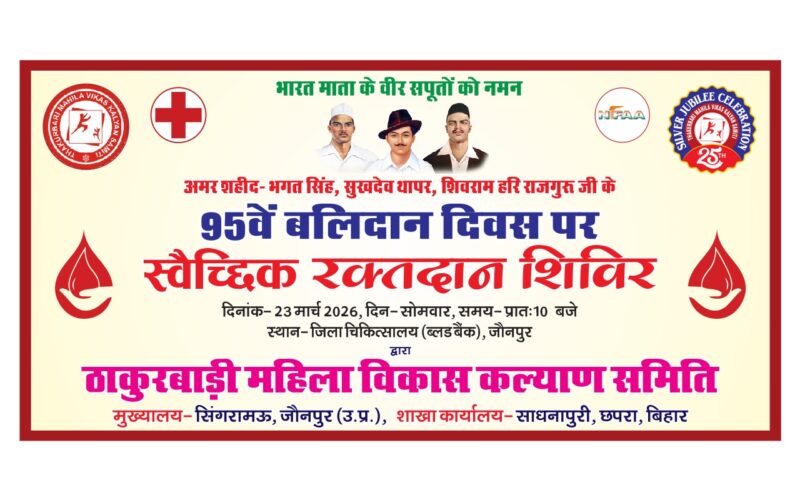 Jaunpur news कल जौनपुर में अमर शहीदों की स्मृति में रक्तदान शिविर का होगा आयोजन